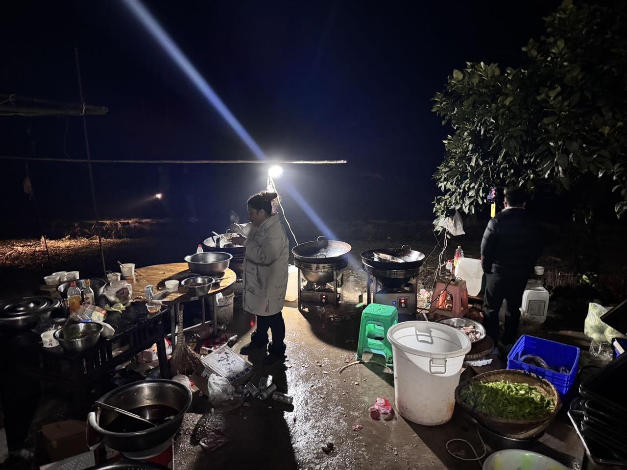 蒋小燕的爱人李先生告诉极目新闻记者,他直到下午5点钟才吃了早饭,两只腿都抬不起来了。大厨杨先生说,他干了好几年坝坝宴,第一次这么累,从早干到晚,到晚上9点自己还没吃上饭。